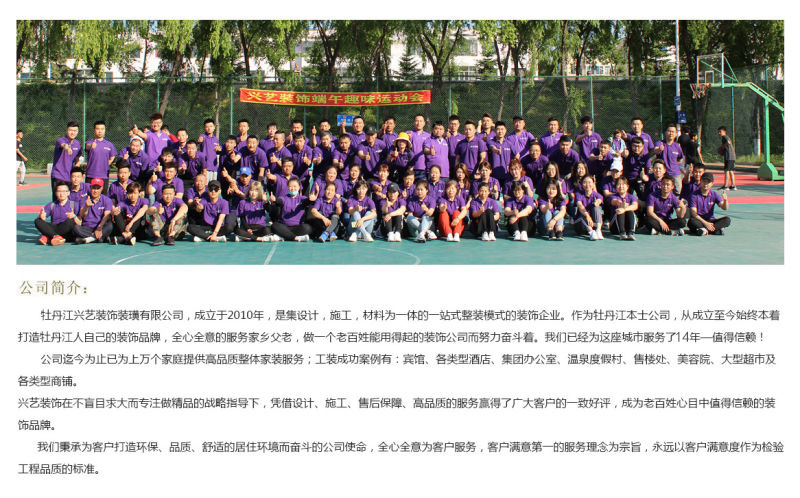 牡丹江興藝裝飾裝璜有限公司 ,是集設(shè)計(jì)、施工為一體的裝飾企業(yè)。作為牡丹江本土公司,從成立至今始終本著打造牡丹江人自己的裝飾品牌,全心全意的服務(wù)家鄉(xiāng)父老,做一個(gè)老百姓能用得起的裝飾公司而努力奮斗著。